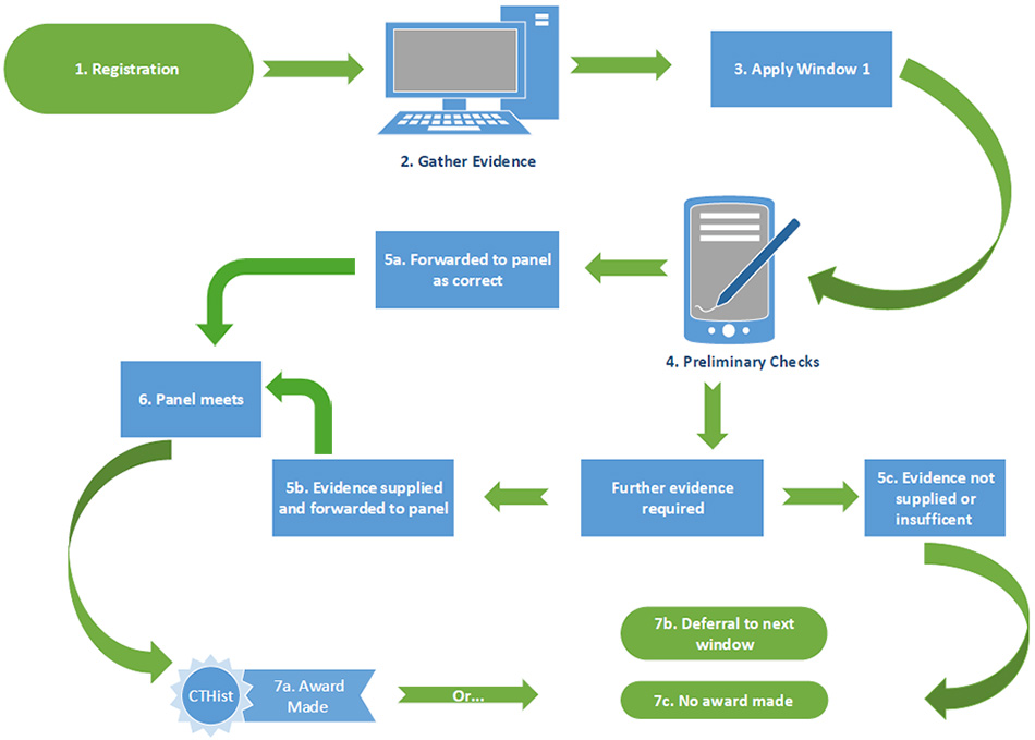 - Steps 1-3: (Registration, Preparing Evidence, Application)