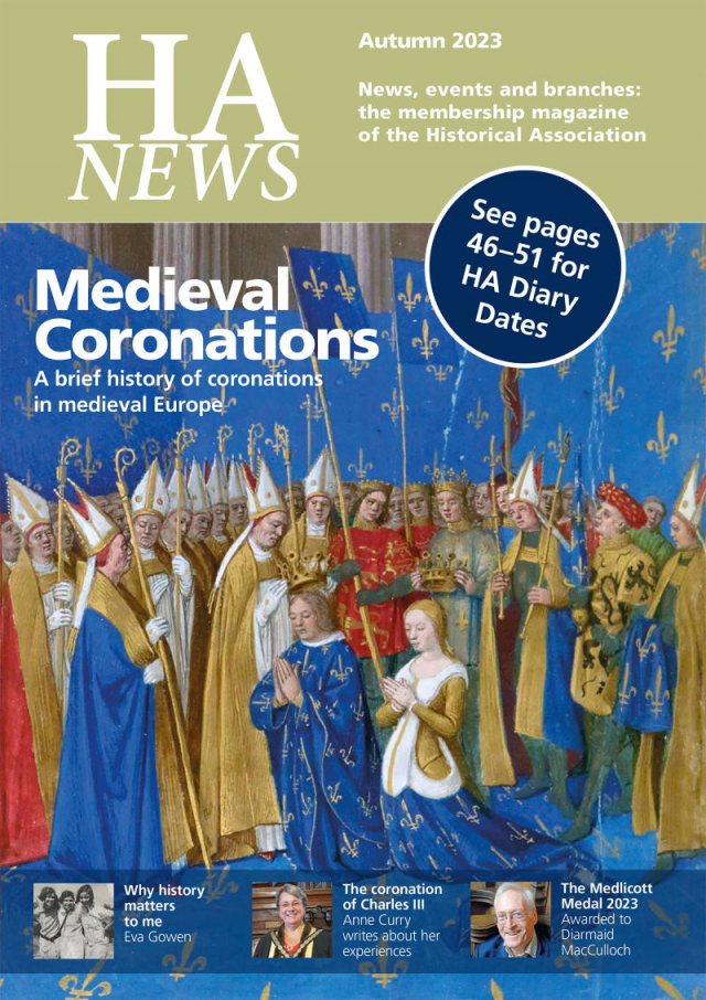 Dr Gabrielle Storey explores the history and importance of medieval coronations, former HA President Dr Anne Curry writes about her experiences as an English Herald at the Coronation of Charles III and we ask primary pupils their views on royalty.