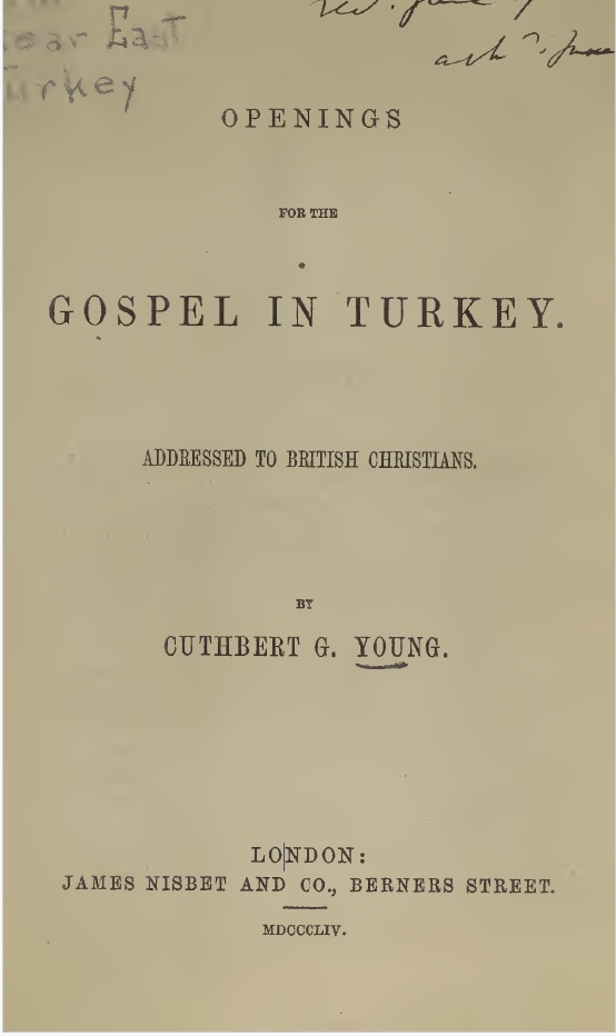 In the mid-nineteenth century, Cuthbert George Young emerged as a quietly influential figure in the world of Christian missionary work. Unlike the missionaries who travelled to distant lands to spread their religious doctrines, Young played a behind the scenes role. Yet his contributions were crucial to sustaining evangelical efforts in the Ottoman Empire. In this blog we summarise the key points from our recently published article in History.